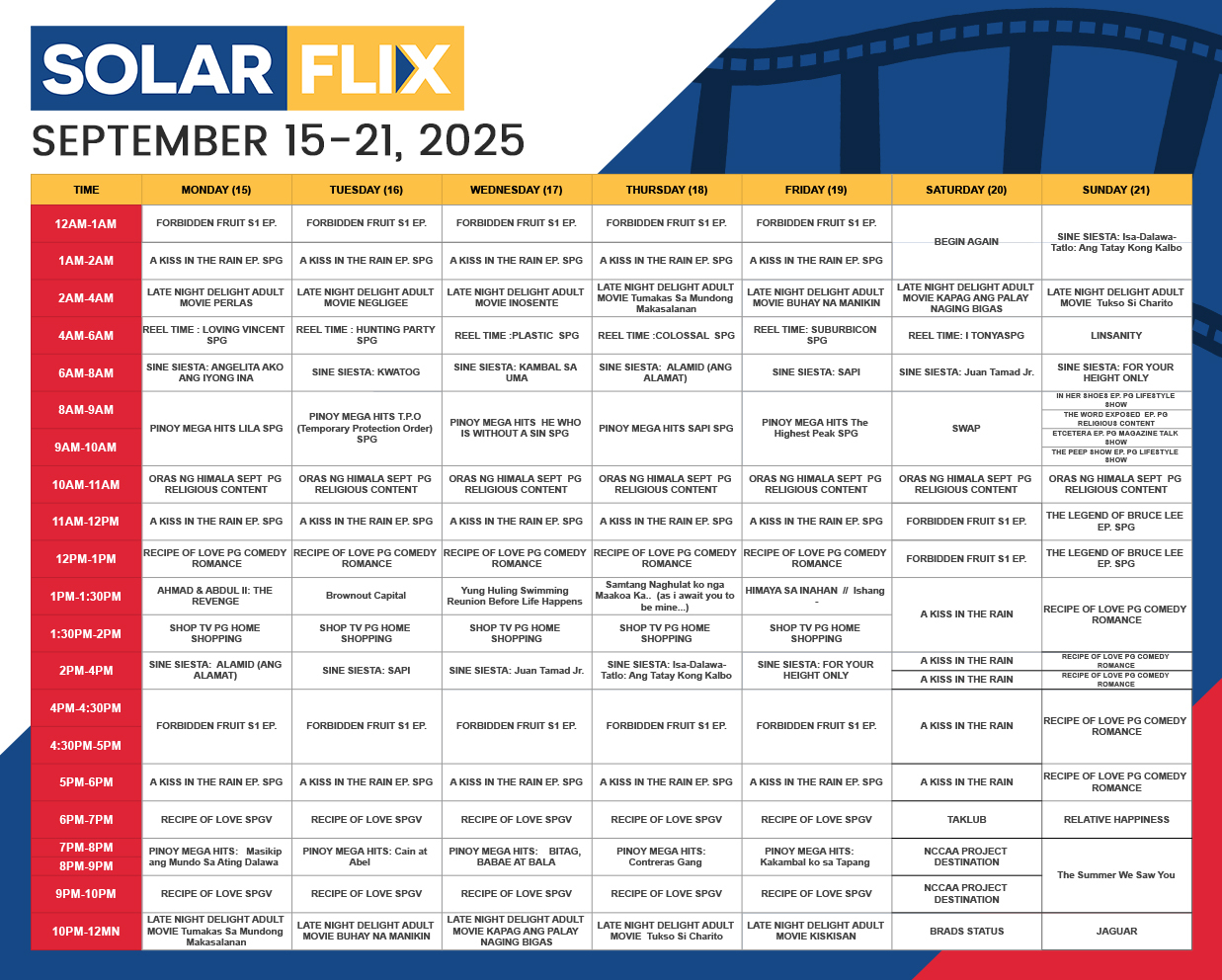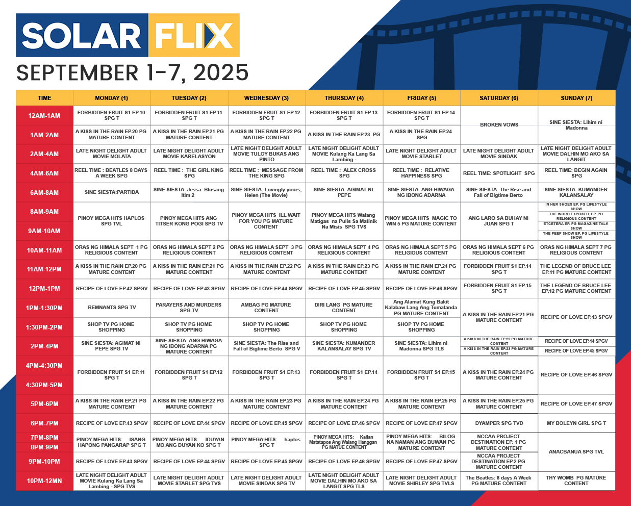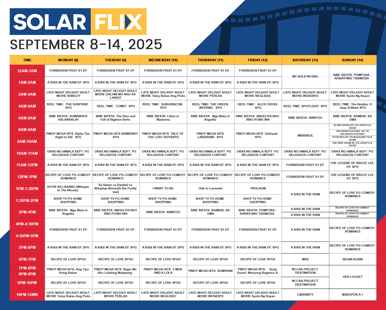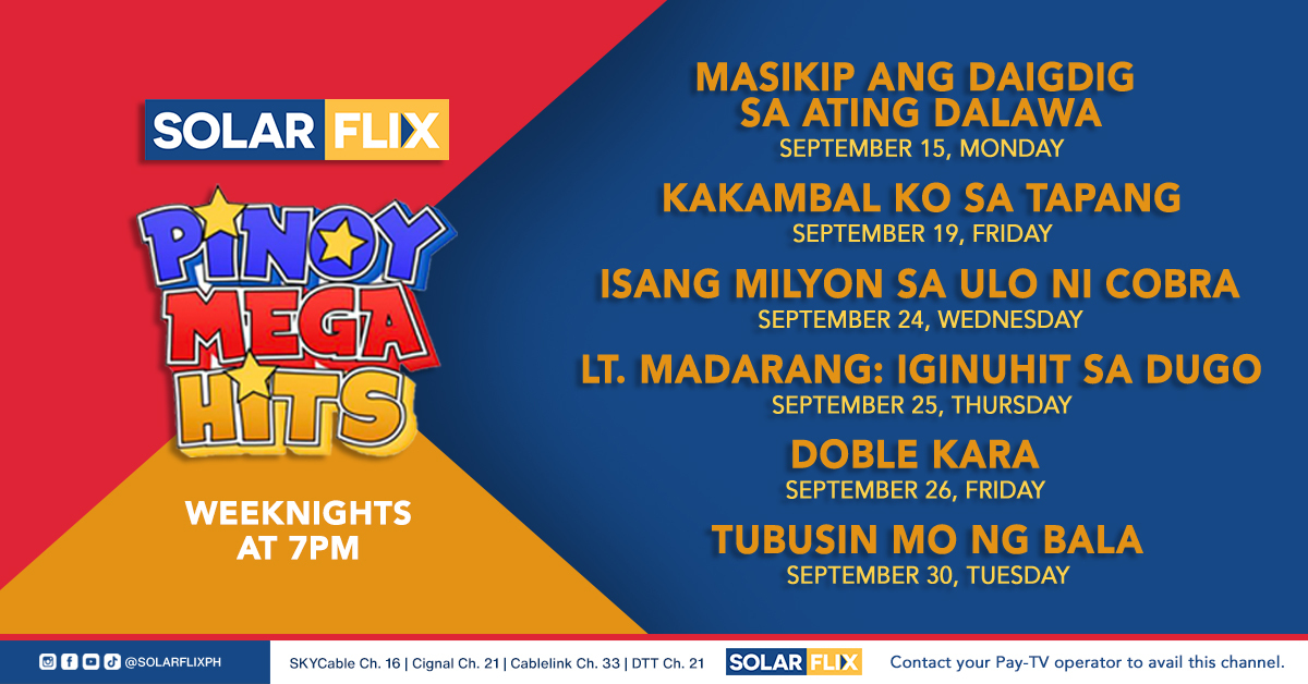 SOLARFLIX is an entertainment channel that showcases all-time favorite Filipino movie classics of various genres, including hardcore action, heartbreaking dramas, and slapstick comedies that are sure-fire hits with Filipino movie fans.